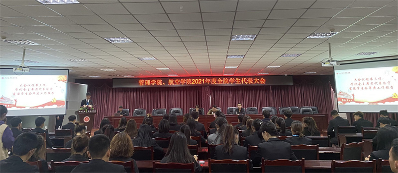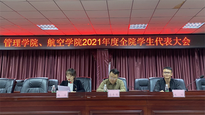 为加强广大同学的思想进步,加强自身组织建设,推动同学们的积极性和对前一年的工作作出报告,学院于10月15日下午5点在图书馆D408召开管理学院、航空学院2021年度全院学生代表大会。学院党总支副书记张东国、团总支书记魏欢、辅导员代表陈财、院学生会主席团、院学生会各部门代表、各行政班级学生代表参加本次大会。