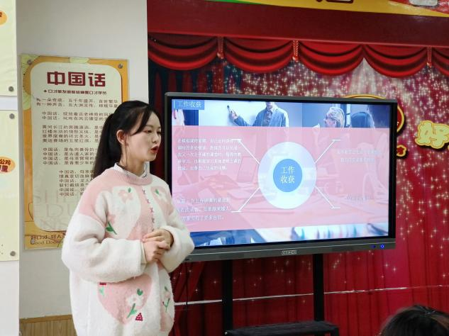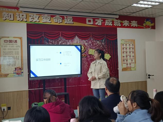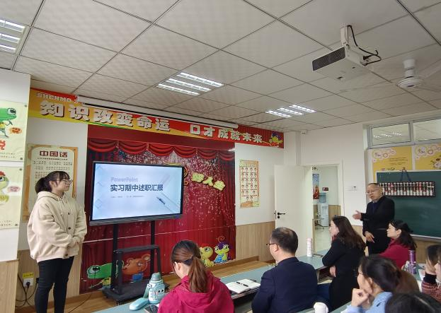 在神墨教育学堂,刘慧、杨加燕、仲柏羽三位实习同学分别就实习以来的各方面情况作了汇报,包括工作总结、优缺点反思、改进措施、下步工作计划等,谈了自己的深刻认识。汇报后,几位同学各自的指导老师均认真进行了点评,指出了大家的优点和需要改进的地方。随后,熊定永谈到,从大家的汇报可以看出,经过两个多月的实习成长很快,进步明显,从教态、语言表达、教学组织等各方面“已经初步具有一名老师的样子”,同时勉励大家要发扬优点,认识不足,找出问题及时改进,不懈努力成长为一名合格乃至优秀的幼儿教师。