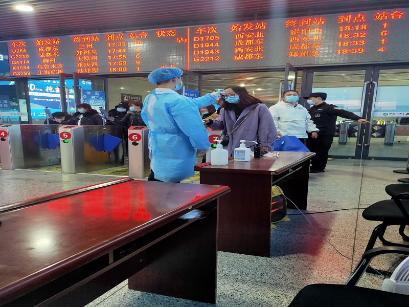 作为防疫工作人员中的一员,他穿戴着防护服、手套、口罩等防护品站立长达数小时,不叫苦也不叫累;他工作积极主动,每当有火车进站,进出站人流量大时,他必站在一线出口处,对来往旅客进行扫码登记、体温检测;