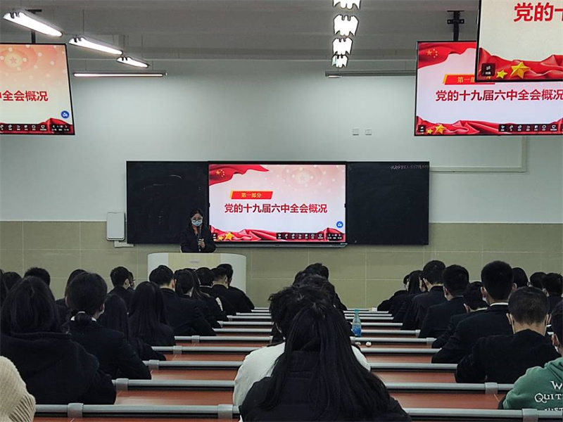 会上,与会师生学习了《中国共产党第十九届中央委员会第六次全体会议公报》。学习会指出,党的十九届六中全会是在重要历史关头召开的一次具有重大历史意义的会议。全会审议通过的《中共中央关于党的百年奋斗重大成就和历史经验的决议》(以下简称《决议》)融汇了百年来中国共产党践行为中国人民谋幸福、为中华民族谋复兴的初心使命所进行的奋斗、牺牲和创造,深刻揭示了“过去我们为什么能够成功、未来我们怎样才能继续成功”,是一篇马克思主义的纲领性文献,必将为更好坚持和发展中国特色社会主义产生重大而深远的影响。