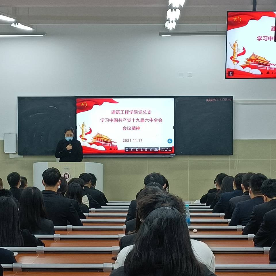 11月17日,建筑工程学院党总支组织全院师生党员召开学习会,认真传达学习党的十九届六中全会精神,并对进一步贯彻落实提出具体要求。