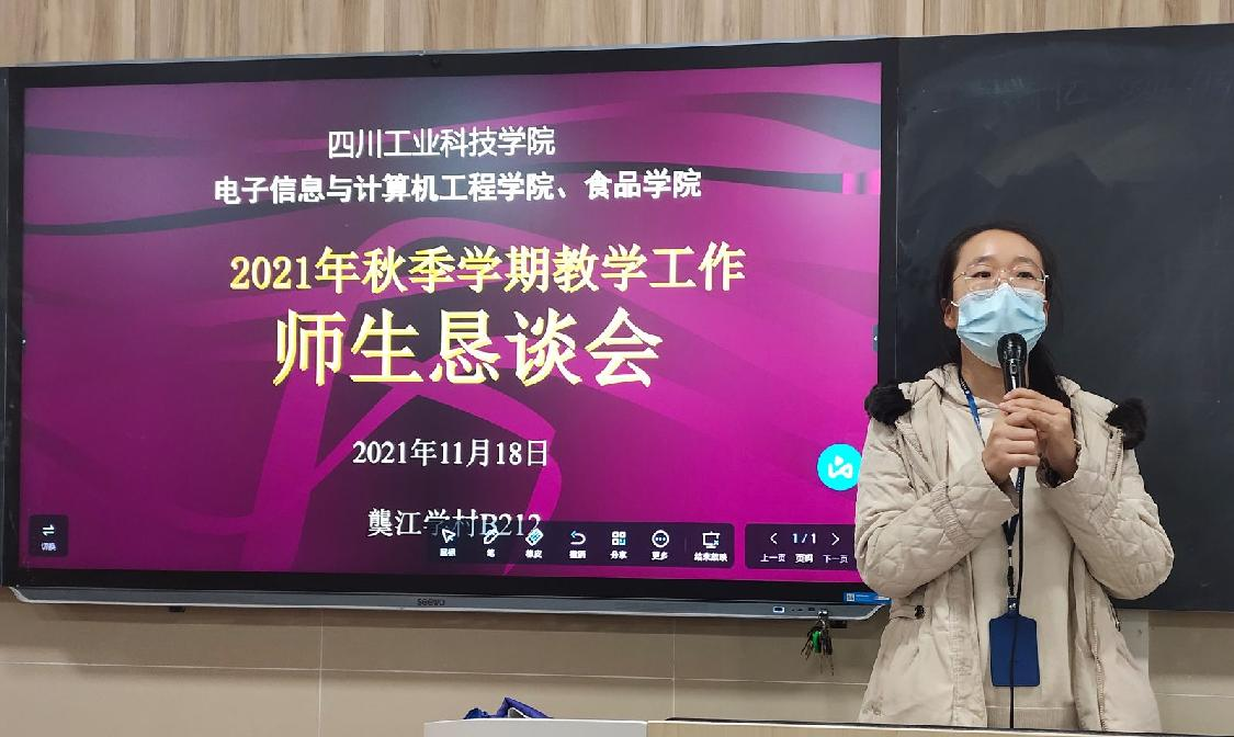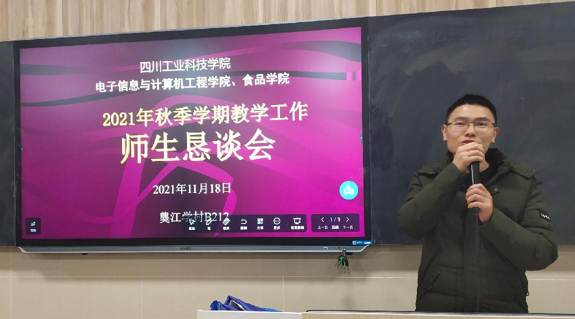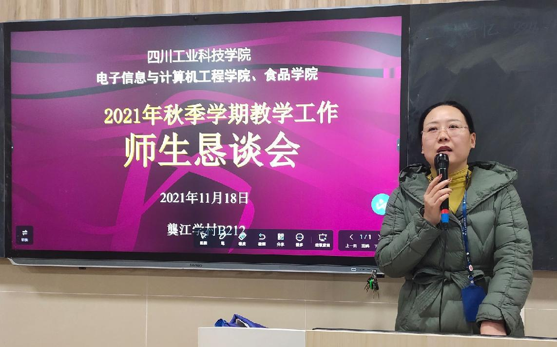 为进一步做好教学教育工作,了解师生教学需求,提高教学质量,11月18日中午,电信学院、食品学院在龑江学村B212教室召开秋季教学工作师生恳谈会。学院院长吴建乐、党总支书记龙厚彦、副院长赵晓江、党总支副书记马娟花、教学办主任、各教研室主任、学工团总支代表、学生代表出席了本次座谈会。会议由学院副院长赵晓江主持。