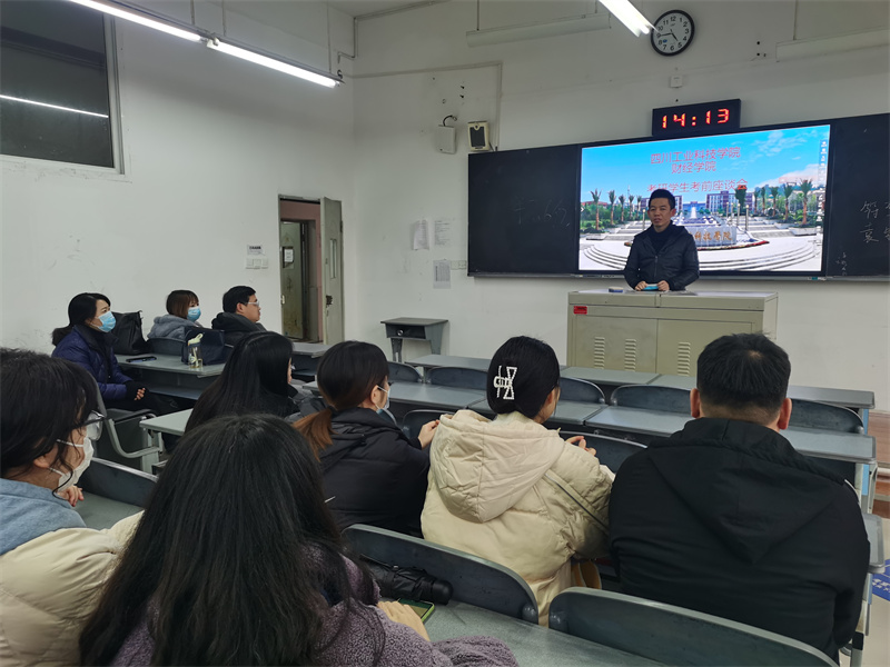 为了解考研学生情况,做好考前动员工作,12月10日下午,财经学院先后于罗江校区钟灵103,东校区10栋603召开考研学生考前座谈会。财经学院党总支副书记杨永岗、学院教学秘书韩未斌、全体毕业班辅导员以及留校备考的学生参加本次座谈会。