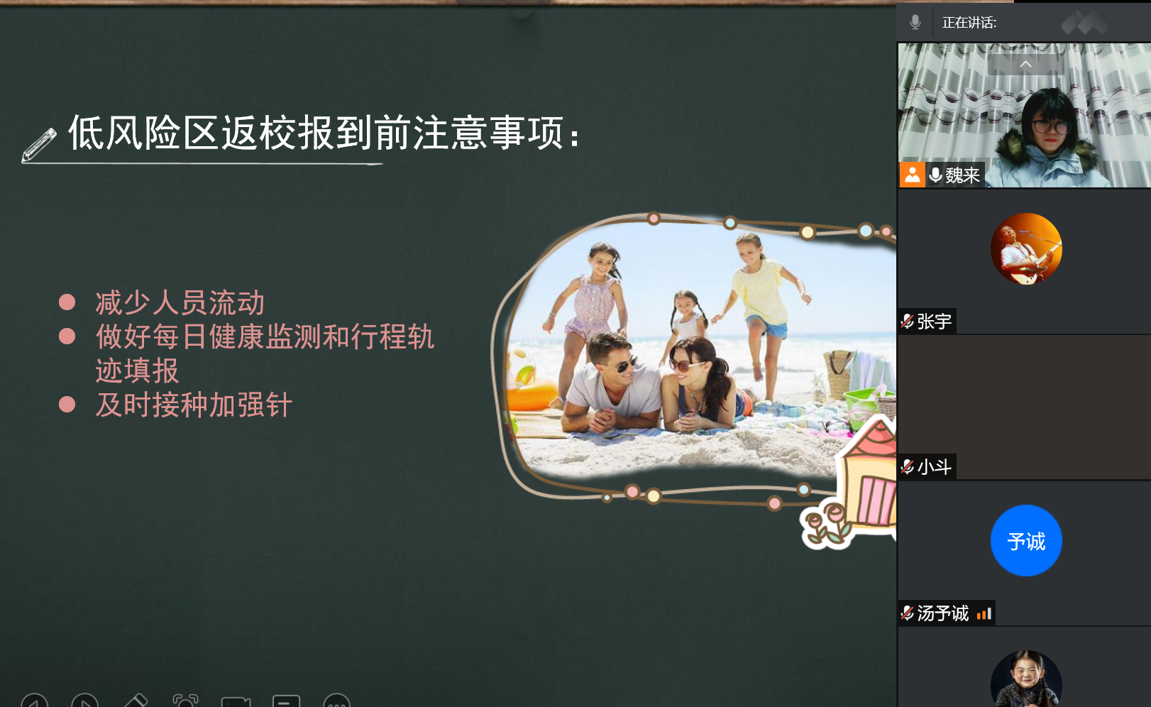 会议要求所有同学谨防麻痹大意思想,坚持做好个人健康监测和每日行程轨迹填报,关注官方相关实时资讯,符合返校条件的同学持打印好的“天府健康通'绿码、通信大数据行程卡绿码、返校前14天《学生返校健康状况监测登记表》以及48小时以内核酸检测阴性证明等材料,从指定通道经体温检测无异常方可入校。并从返校交通安全等方面提醒学生自觉遵守交通法规,返校途中不乘坐营运手续不全、超载超员、非法运营的交通工具,尽量乘坐公共交通工具或者选择正规的出租车。