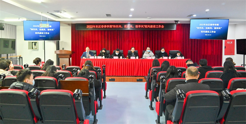 本次春季学期“转作风、优教风、强学风”校风建设工作会,对今后东区的校风建设提出了具体要求,为学生创造良好的学习、生活环境,探索东区校风建设的新规律,营造良好的育人环境做出新贡献。