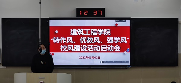 为落实学校“转作风,优教风,强学风”校风建设活动,3月2日,建工学院在龑江学村C212室召开了校风建设活动启动会。学院全体教师,学生党员及团总支学生分会干部参加会议。杨春主持启动会。