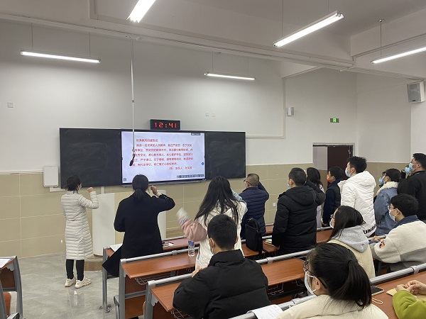 杨春指出,教风学风建设是当务之急,是提高教育教学质量和人才培养质量的迫切需要,作为高校教师、作为新时代大学生我们要牢记我们的“初心”、“使命”,牢记习近平总书记对教师的“四有”要求,在政治素养、专业知识、课程建设、课程思政等方面努力钻研,争做“有理想信念、有道德情操、有扎实知识、有仁爱之心”的“四有”好老师。全体同学要牢记习近平总书记对青年学生的殷切期盼,珍惜学习机会、端正学习态度、明确学习目标,努力做“有理想、有追求、有担当、有作为、有品质、有修养”的“六有”青年学生。