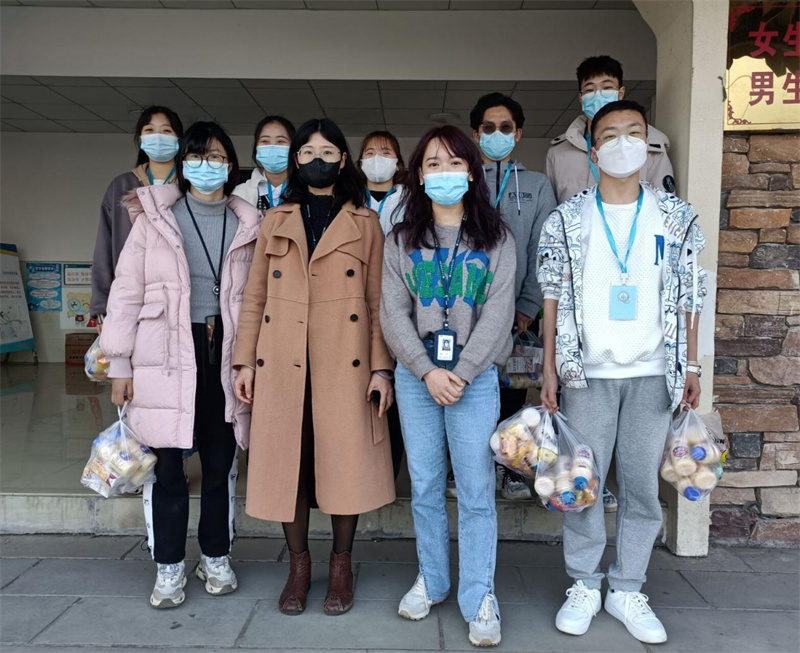 2月27日下午,在管理学院院长王进、党总支副书记张东国、学院学工办副主任魏来、团总支书记魏欢的带领下,志愿服务队的同学们为居家监测的同学送去生活物资。在严格落实防疫监测工作,观察居家人员健康状态的同时,关心同学,为同学们送温暖。