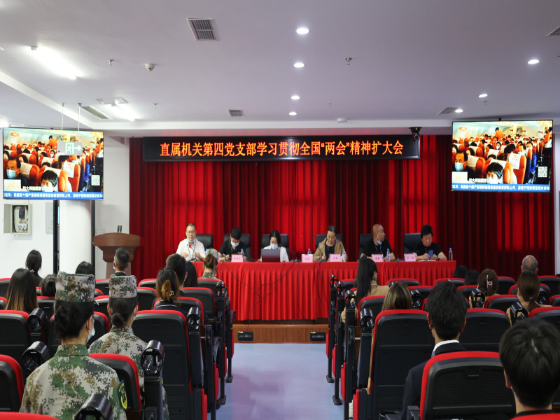 3月16日下午,直属机关第四党支部学习贯彻全国“两会”精神扩大会在图书馆301会议室召开。学校党委副书记、纪委书记、东区管委会主任倪霞出席会议,第四党支部全体党员、东区学生分会全体成员、各班团支书参会。会议由第四党支部书记何林贵主持。