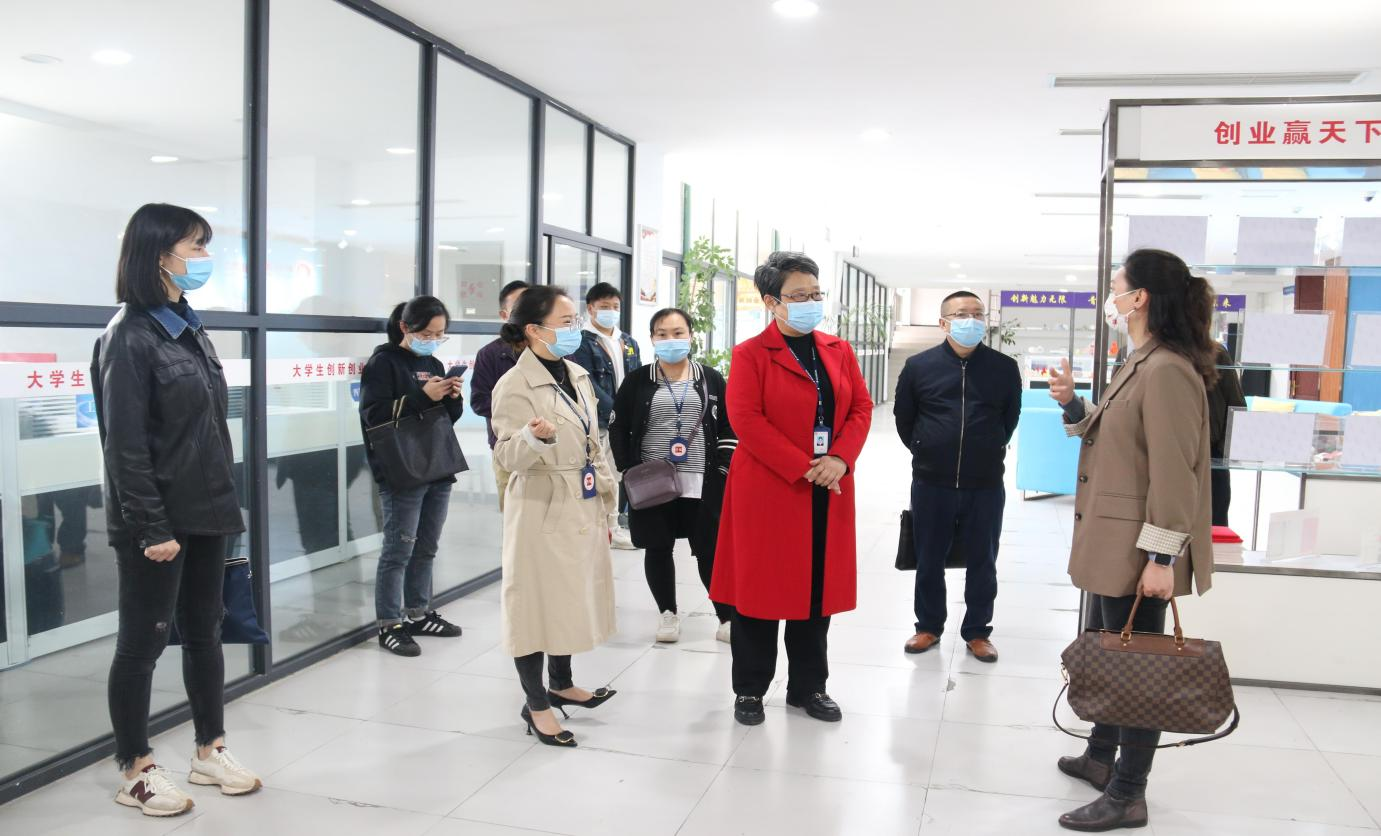 3月21日下午,德阳市生产力促进中心王丽玮主任和罗江区科技局一行9人到学校众创空间考察指导工作,学校副校长、创新创业学院院长郭桂萍、创新创业学院副院长曾尧、赵晓江,科技处副处长刘翠陪同考察。