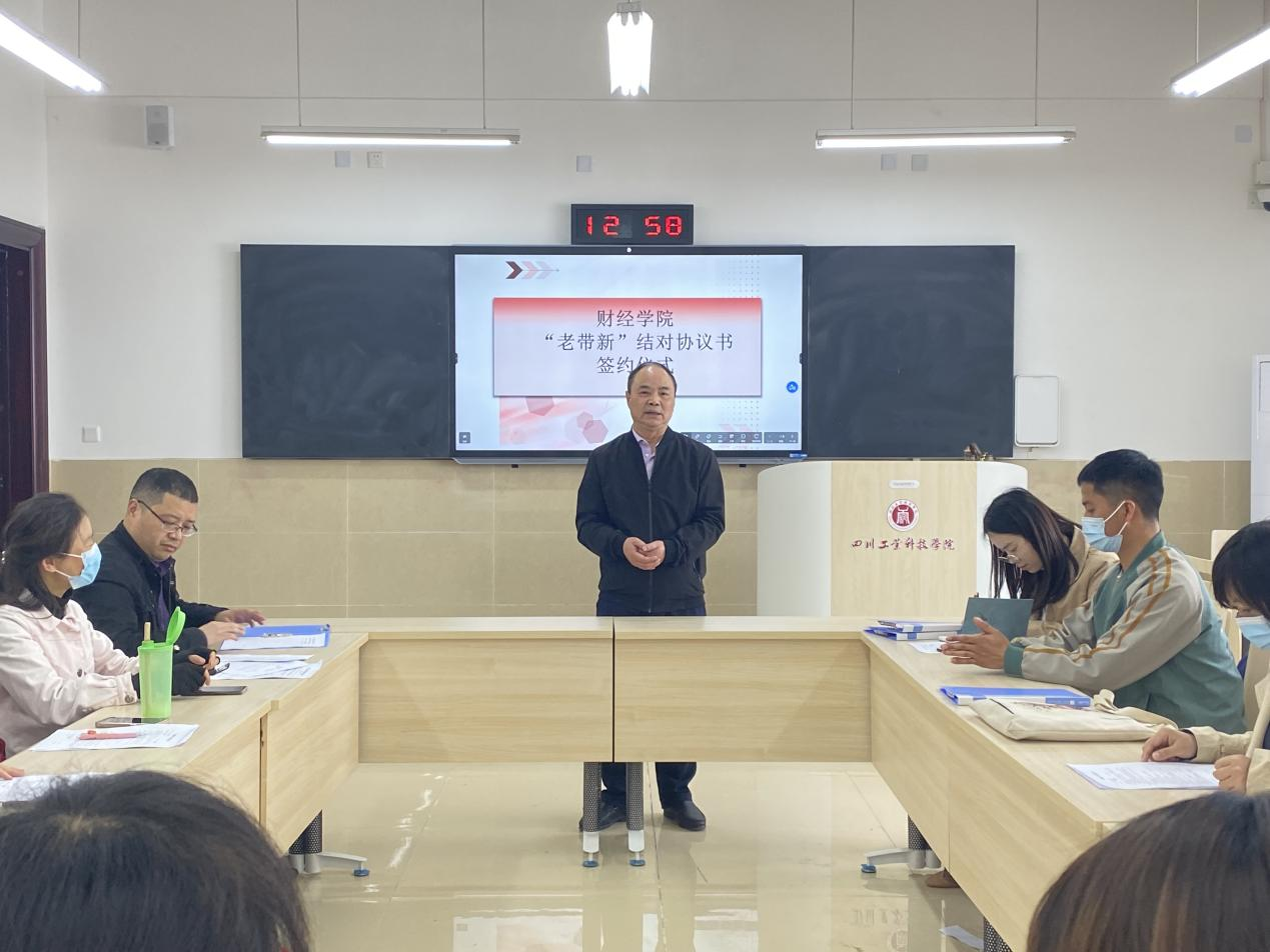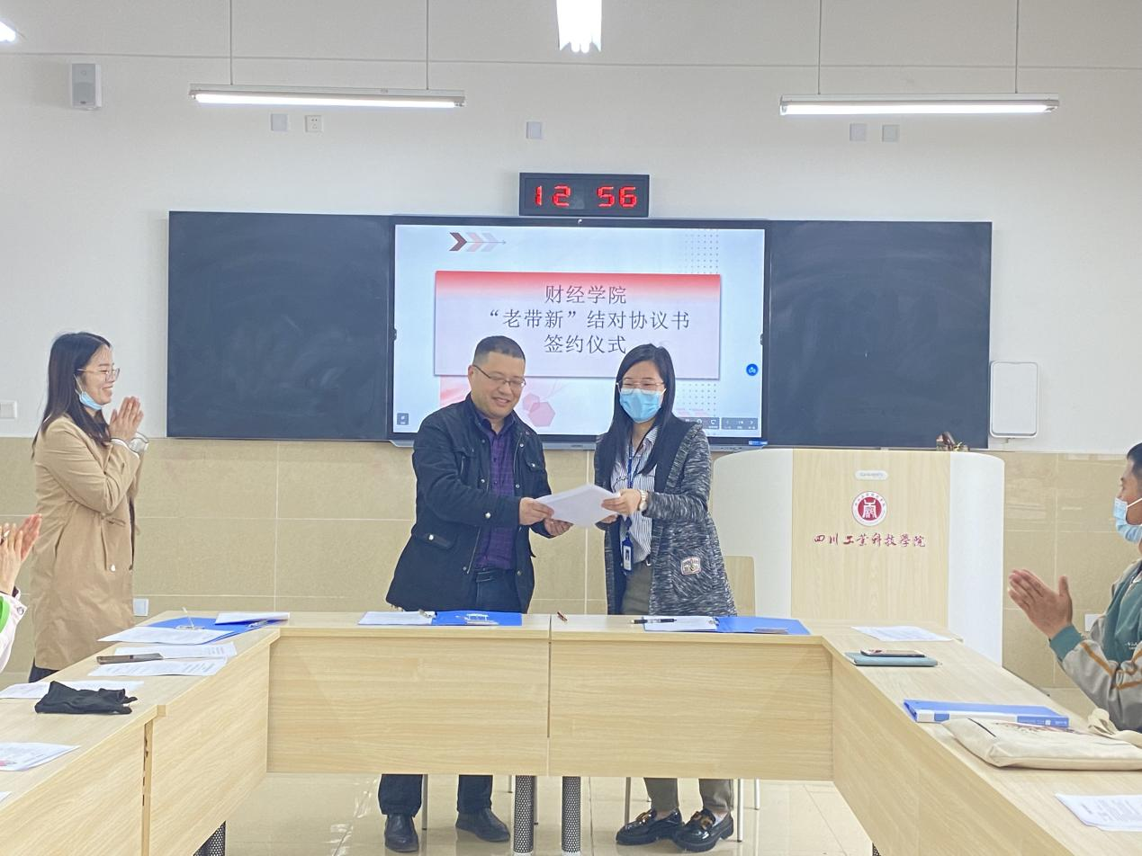 为进一步加强学院的师资队伍建设,充分发挥学术造诣高、经验丰富的老教师对新教师的“传、帮、带”作用,根据学校《教师“老带新”制度实施办法(修订)》(川工科〔2021〕177号)的相关要求,3月22日中午,财经学院全体教师于龑江B410教室参加了学院“老带新”结对协议书签约仪式,财经学院院长魏顺泽,副院长郑建,以及全体教师参加。本次仪式由周星老师主持。