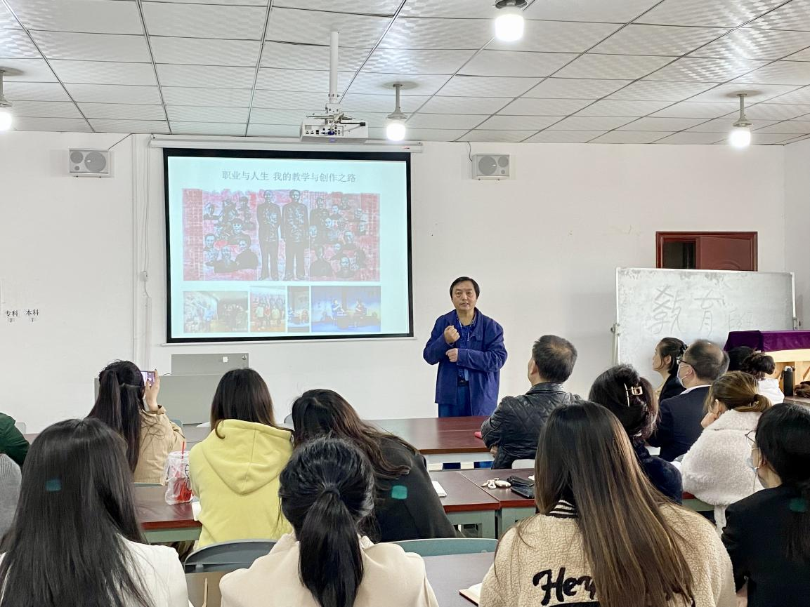 李青教授根据自己的经历,从“我的青少年时代”“求学之路”“我的一家子”“教学与科研”“教学与创作之路”等五个方面,来阐述“职业与人生”并分享自己创作的版画作品。目的在于引导教职员工对自己职业的规划、职业与人生、教学与科研的思考。