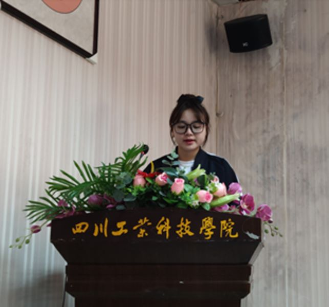 21级体指2班学生代表汤馨同学发言:全体学生将对国家和民族的赤胆忠心、爱国热情投入到文化学习上,树立忧患意识,努力做有理想、有担当的新时代青年。