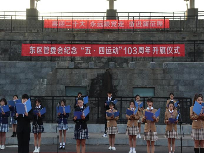 礼毕后,由教育学院的同学朗诵,她们抑扬顿挫,铿锵有力,慷慨激昂,似乎把人拉入历史,让人热血沸腾。激昂的朗诵同时也告诉我们青少年要有爱国心,进取心,更要有担负国家命运的责任和使命。随后,由学生代表发言,带大家回顾了五四运动的历史,代表全体学生表达了愿为祖国、愿为社会、愿为人民发奋图强,努力成为堪当民族复兴大任的时代青年的决心与毅力。