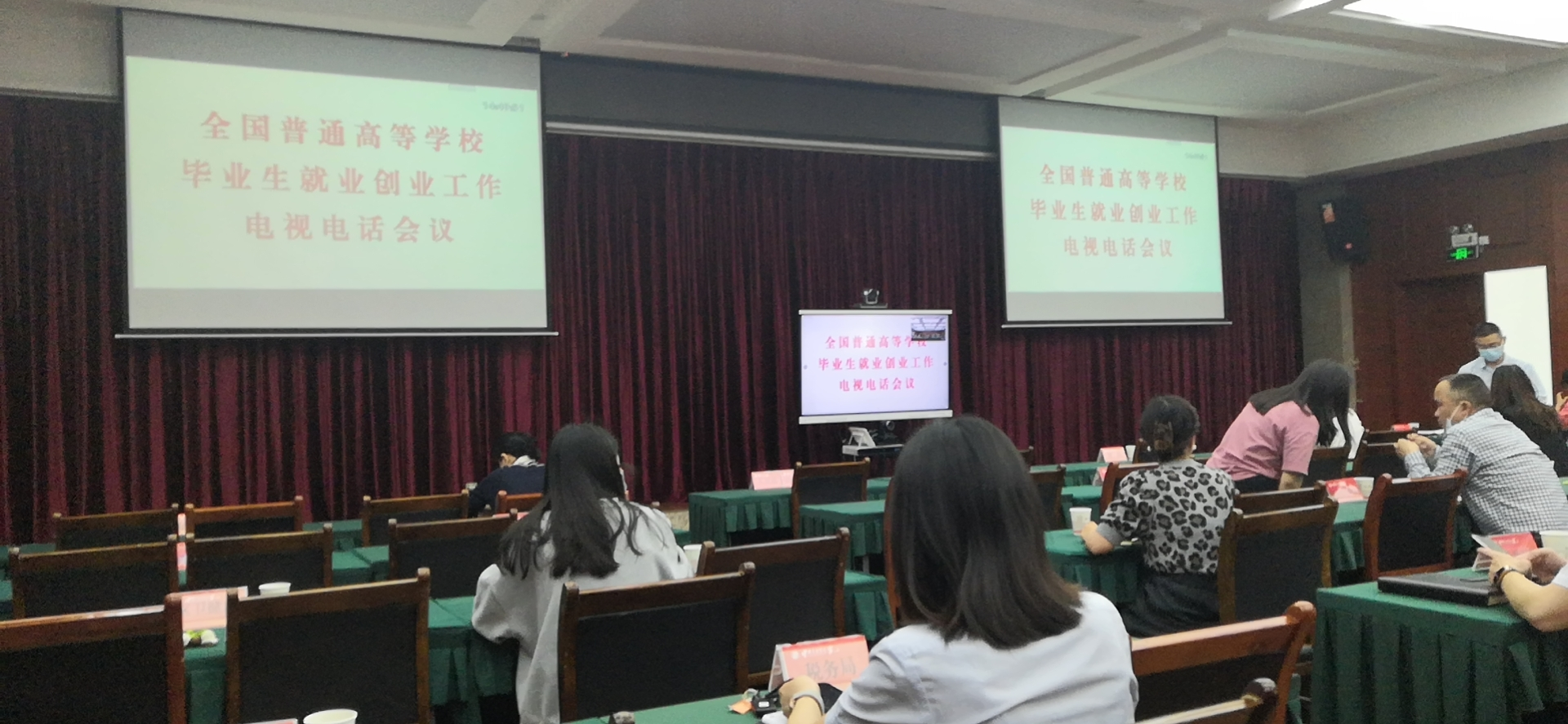 全国普通高等学校毕业生就业创业工作电视电话会议5月16日在京召开。中共中央政治局委员、国务院副总理孙春兰,中共中央政治局委员、国务院副总理胡春华出席会议并讲话。我校党委书记张继华、就业指导服务中心主任曾尧分别在德阳分会场和罗江区分会场参加本次电视电话会。
