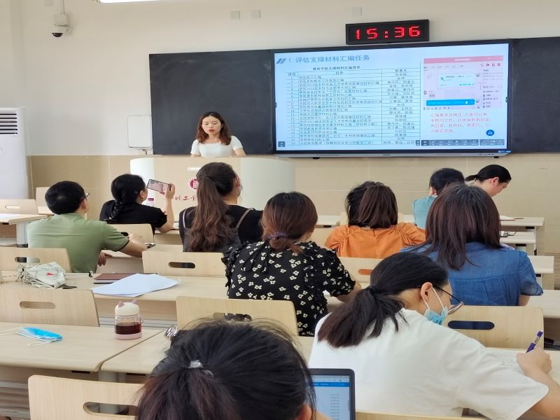 随后,学院评建办公室负责人李东娅针对近期评估任务进行讲解,她讲到近期工作主要包括本科教学工作合格评估支撑材料汇编和本科教学工作合格评估原始工作材料归档两部分。其中,本科教学工作合格评估支撑材料汇编要求大家在前期整理收集资料的基础上进行完善、丰富和汇编,做到有封面、有目录、有页码、有图片,图文并茂,本科教学工作合格评估原始工作材料归档主要分为党建、学院建设与发展规划、师资队伍建设、学科专业建设、实验实践教学建设、科研学术及对外交流、教学管理与服务、安全工作九个目录,要求相关负责教师在近期收集对应的文件、方案、纪要、记录、表册、试卷、报告等原始资料以备本科教学合格评估检查所需。
