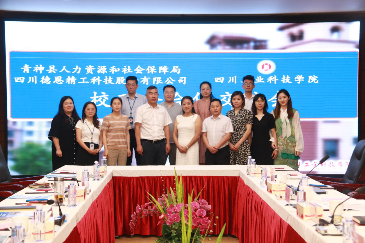 近日,习近平总书记来川视察时强调:要进一步挖掘岗位资源,千方百计拓展市场性岗位,做实做细就业指导服务。为进一步落实总书记的重要指示和殷殷嘱托,学校加大校政企合作交流力度。6月16日,学校与眉山市青神县人力资源和社会保障局、四川德恩精工科技股份有限公司进行对接洽谈,就校政合作、校企合作、人才引进、产教融合以及学生实习就业等方面进行深入交流。