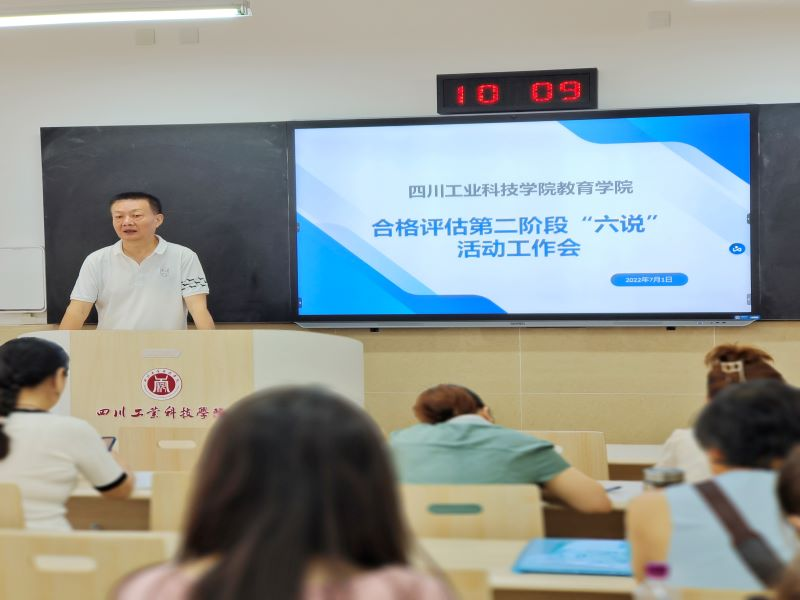 合格评估“六说”活动是迎评工作的重要内容,是反映我院教师在本科教学工作中贯彻落实学校顶层设计和培养目标的具体体现,也是对我院办学特色、教学质量和管理水平的重要检验。根据四川工业科技学院《关于开展合格评估”六说”活动的通知》(川工科评建办(2022)6号)文件要求,7月2日上午,学院在龑江校区B505召开了合格评估“六说”活动工作会,会议由院长吴节义主持,党总书记熊定永、副院长孙红英、教学主任徐伟及学院全体教职工参加了本次会议。