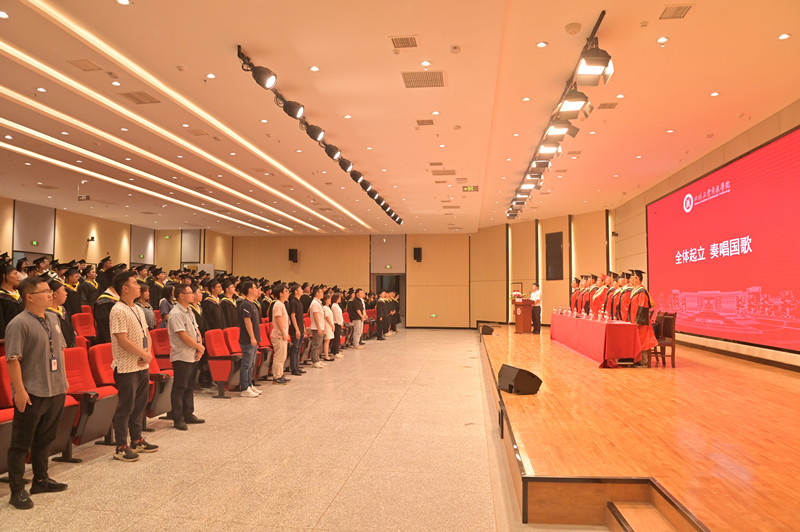 典礼在庄严的国歌声中拉开帷幕,全体师生起立齐唱国歌。学院副书记马志雪宣读了《学院省级优秀大学生毕业生表彰决定》。副院长徐纯厚宣读了《学院关于2022届毕业生学士学位授予决定》。郑敏院长致辞:他说这是一个值得纪念的日子,希望每个毕业生在今后的工作中能虚怀若谷,能团结同事,以集体的力量去完成相关的工作,能以母校为荣,能积极工作,在以后的工作中以优异的业绩回馈社会和人民,回报家人。最后祝愿所有的毕业生前程似锦,为社会的发展贡献自己的才华与智慧!在热烈的气氛中,郑院长结束了精彩的发言。