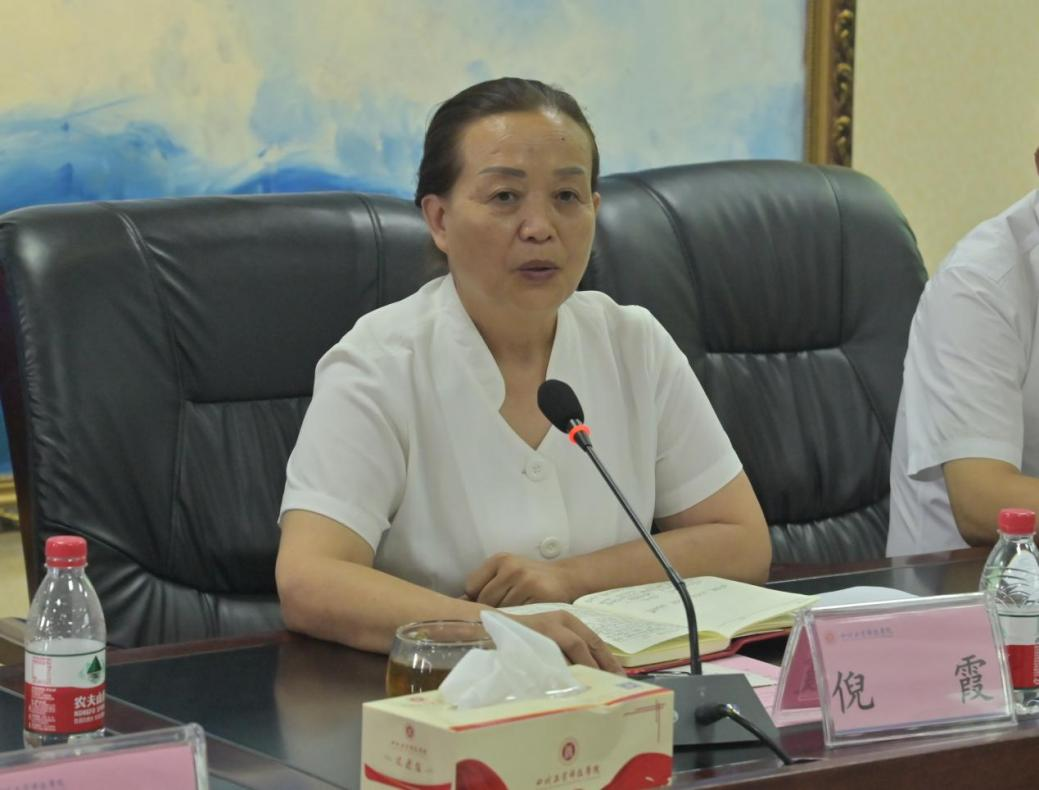 图为学校党委副书记、纪委书记倪霞对联系学院的汇报内容进行点评