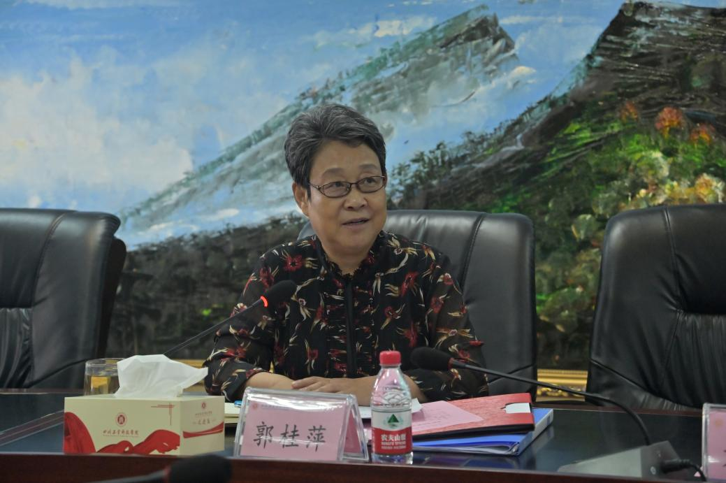 图为学校副校长郭桂萍对联系学院的汇报内容进行点评