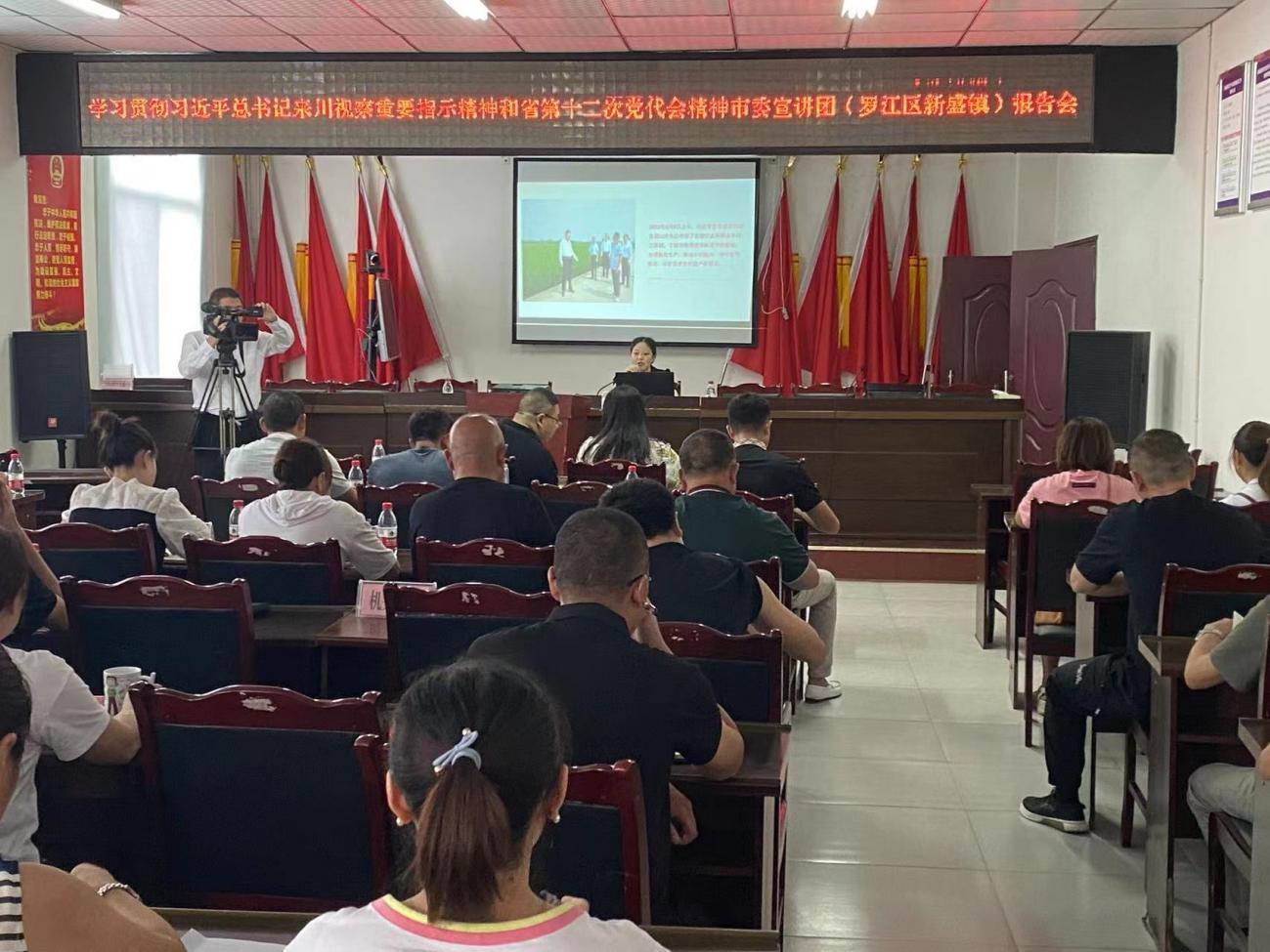 为深刻学习贯彻习近平总书记来川视察重要指示精神和省第十二次党代会精神,7月13日上午,德阳市委宣讲团第二分团(罗江区宣讲分团)成员、我校马克思主义学院副教授江晓燕到罗江区新盛镇为新盛镇党员干部作学习贯彻习近平总书记来川视察重要指示精神和省第十二次党代会精神宣讲报告会,大会由罗江区新盛镇党委委员、武装部长、副镇长刘良辰主持,罗江区新盛镇党员干部40余人参加了本次宣讲会。