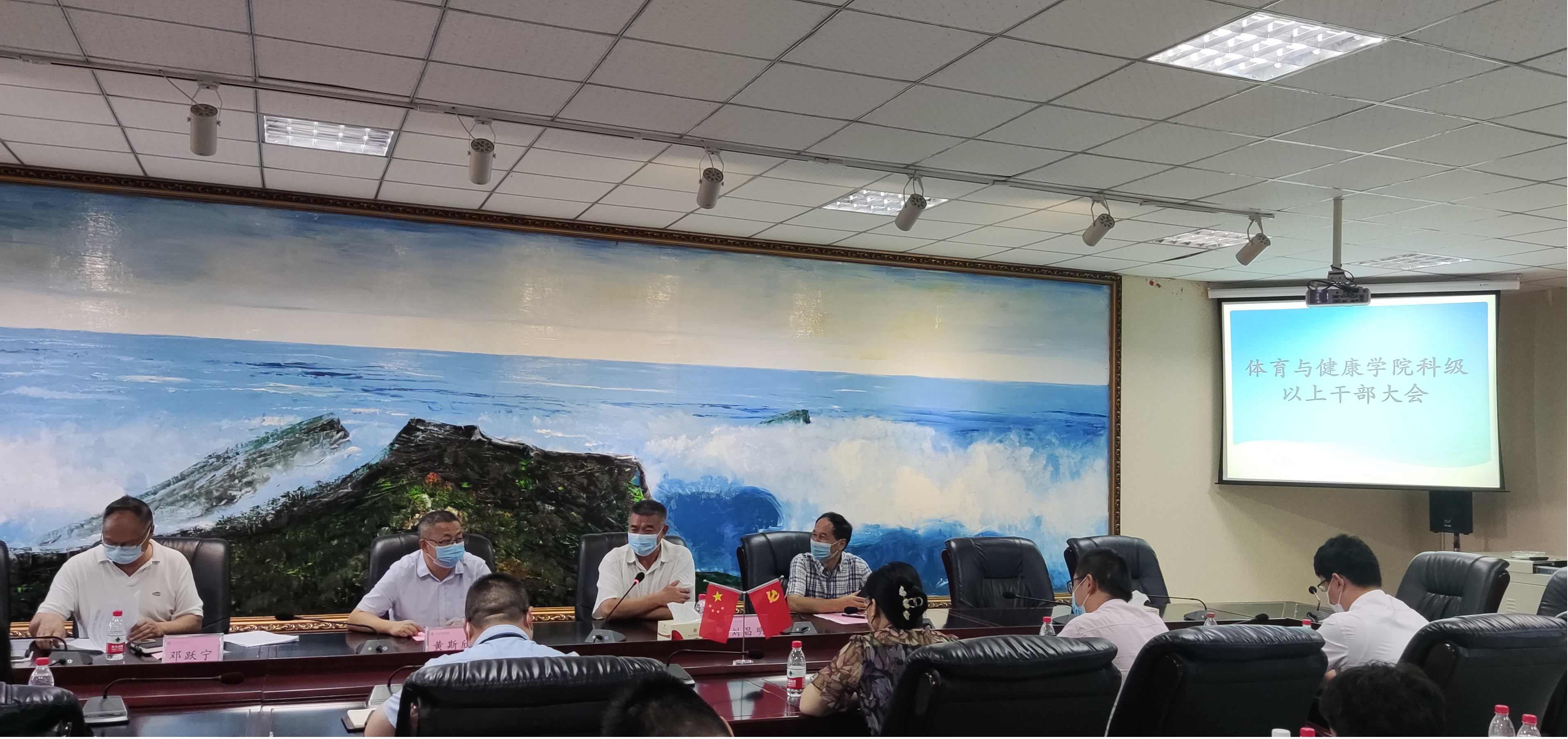 8月10日上午,体育与健康学院在罗江校区图书馆401会议室召开了科级以上干部大会,学校执行校长刘昌明、副校长黄斯欣、电子信息与计算机学院院长吴建乐、体育与健康学院院长邓跃宁及全体副科级以上干部参加了会议。会议由执行院长雷耀方主持。
