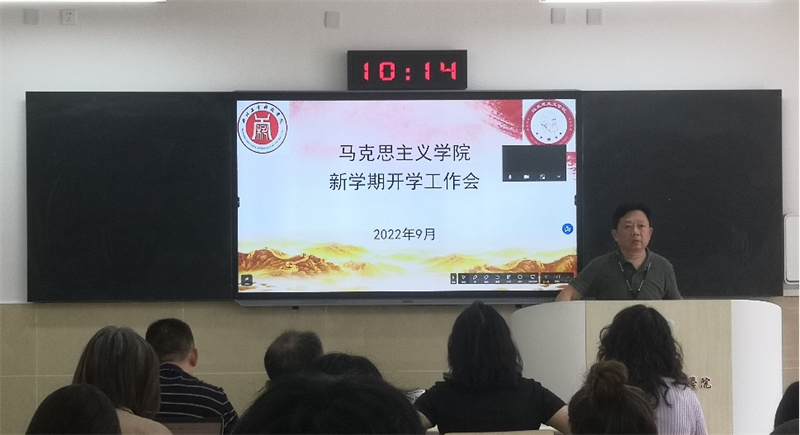 为做好新学期评估与教学工作,马克思主义学院于9月1日开展新学期部署会议,全体马院老师参与会议。