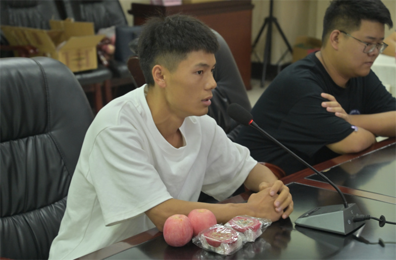 杨朋在听取灾区学生发言后,向他们介绍了学校在地震发生后开展的系列工作,并代表学校向他们及家人表示诚挚的慰问。杨朋并向与会学生提出三点希望:一是希望同学们进一步坚定战胜灾难的信心,相信在党和政府的坚强领导下,在大家的共同努力下,一定能够夺取抗震救灾的胜利,重建美好家园;二是希望大家安心学习,以乐观向上的心态面对困难,有问题有困难及时与辅导员联系,学校会尽最大的努力协助解决;三是希望同学们永怀一颗乐观的心,以良好的精神状态,充足的干劲,以优异的成绩回报党、回报学校的关怀与培育。