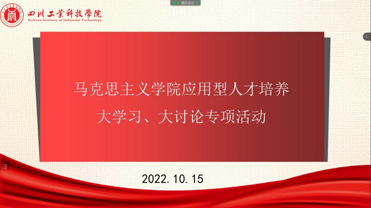 为深入贯彻落实新时代全国高等学校本科教育工作会议精神,加快振兴本科教育,构建高水平人才培养体系,全面提高高校人才培养能力,进一步落实中央关于引导部分地方普通高校办学应向应用型转变的决策部署,持续推动学校高水平应用型人才培养与教学改革。10月15日下午三点,我院全体教师参加了线上开展的马克思主义学院应用型人才培养大学习、大讨论专项活动。