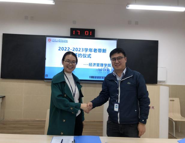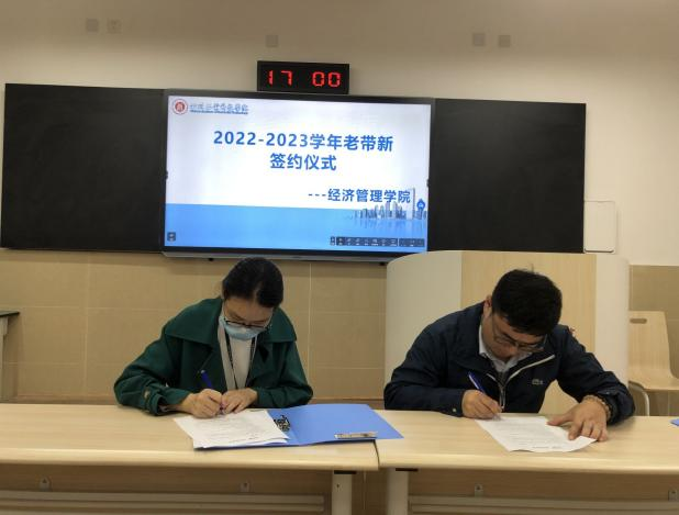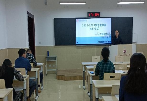 为进一步加强学院的师资队伍建设,充分发挥学术造诣高、经验丰富的老教师对新教师的“传、帮、带”作用,使新教师尽快成长为一名合格的人民教师,经济管理学院于10月6日下午在B401举行2022-2023学年“老带新”签约仪式,本次仪式由教学办副主任黄冬梅主持,参会人员有魏顺泽院长、王进书记、教学办副主任、指导老师和新教师。