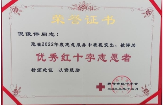 近日,2022年绵竹市红十字会志愿服务工作交流及表彰座谈会圆满结束,学校绵竹校区荣获“绵竹市红十字会优秀基层组织”荣誉称号,学校倪俊伟老师、胡佩琪同学荣获“2022年优秀红十字会志愿者”称号。