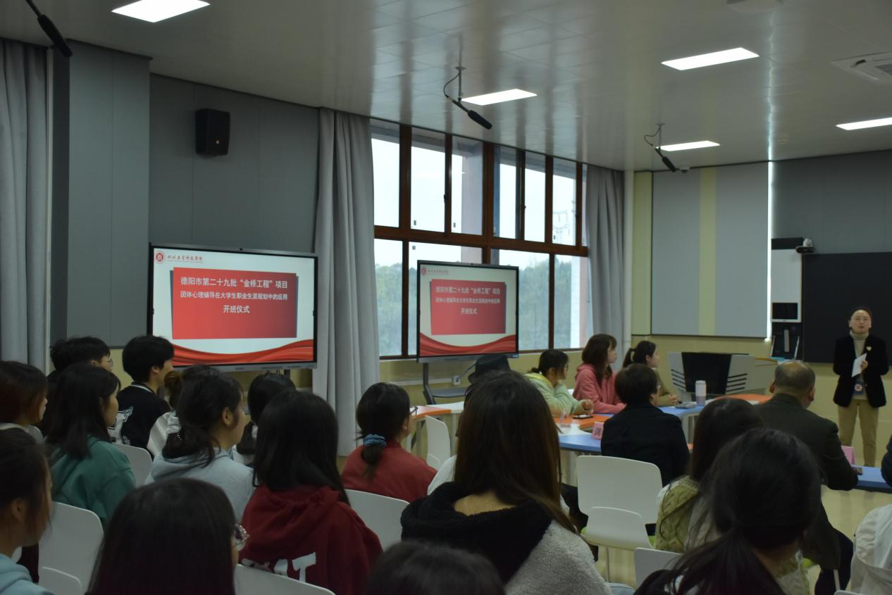 黄友芹在开班仪式上讲道:“金桥工程”是德阳市委、市政府领导的,组织动员社会力量和广大科技工作者、科技类社会组织广泛参与的,在项目持有方和需求方之间搭桥,引进和转化科技成果,推进科技与经济融合的社会性、群众性科技成果转移转化工程,是德阳市实施创新驱动发展战略的重要任务和科技创新体系建设的重要组成部分。本次项目名称是团体心理辅导在大学生职业生涯规划中的应用,是中科博爱(北京)心理医学院研究院德阳分院经过多年研发的体验式、活动式、沉浸式的培训,通过观察、学习、体验,帮助参训学员树立生涯意识和职业理想,进行自我探索和职业探索,通过自我设计和自我管理,制定职业生涯方向和目标,并且基于这个方向和目标进行心态、知识、能力和行动上的职业准备。