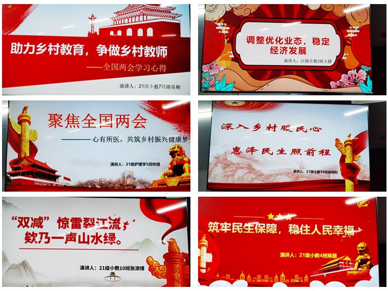 为认真学习贯彻两会精神,提高我校学生的政治素质,把全国“两会”精神融入学习和日常生活,由党委组织部主办、机关第四党支部承办的“聚焦全国两会,牢记使命担当”演讲比赛决赛于4月13日在东区图书馆301会议室举行。此次比赛由组织部、办公室、学生处、体健学院的教师担任评委。