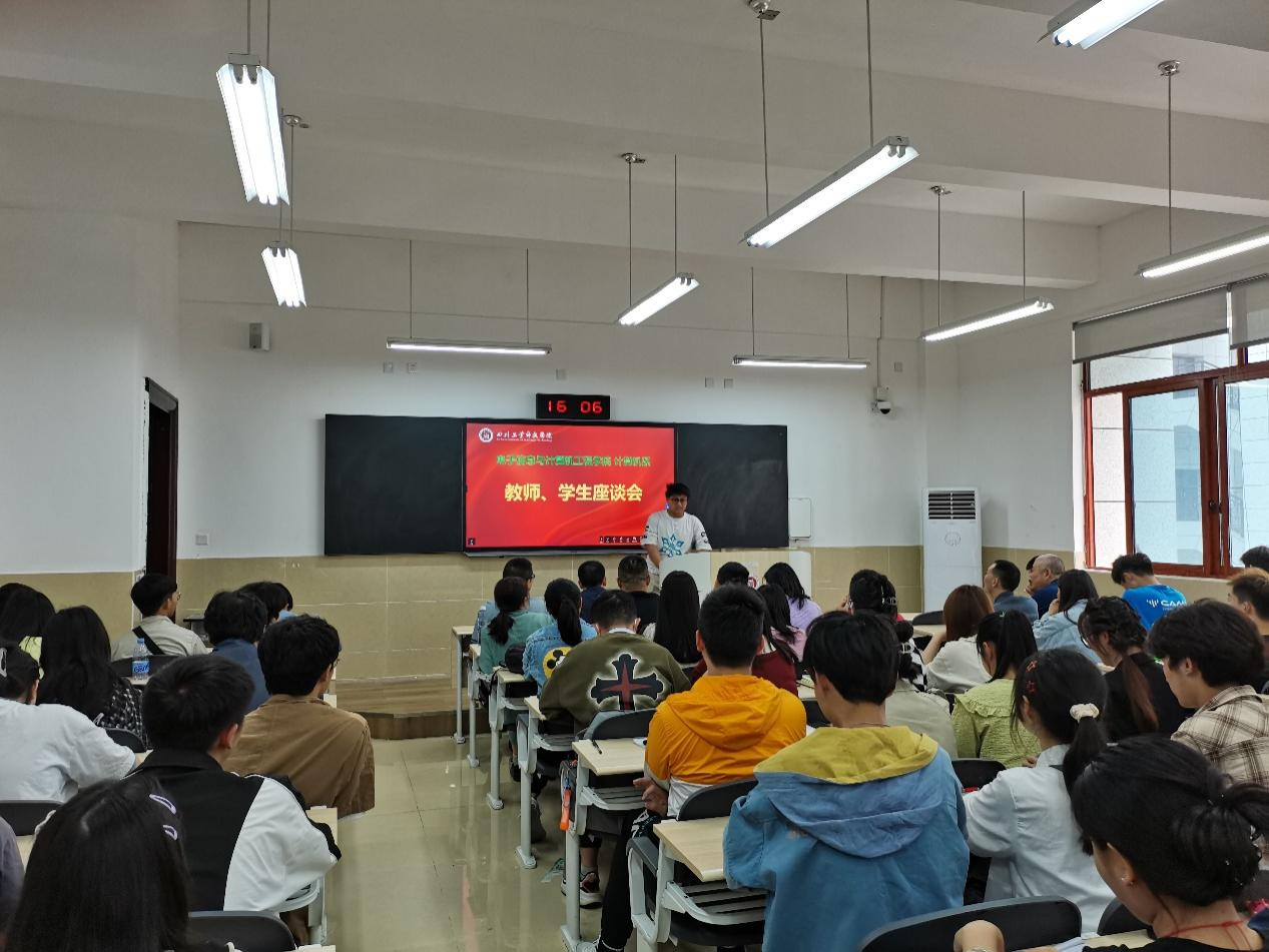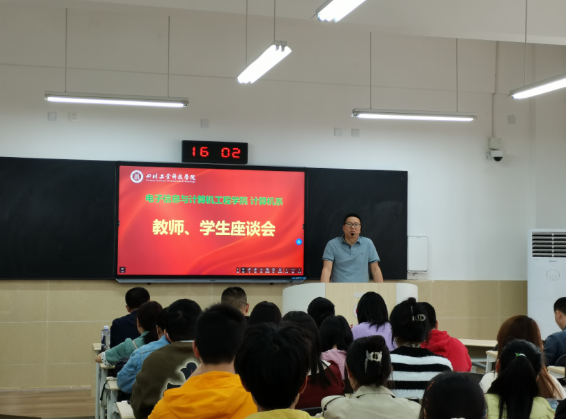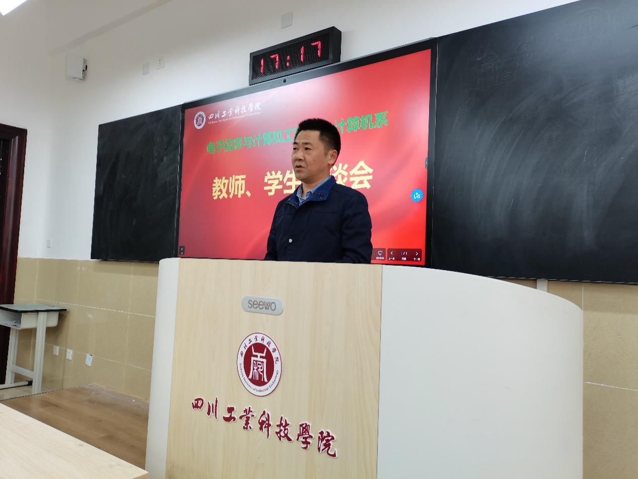 4月27日下午,电信学院计算机系、电子电气系分别在龑江校区C310、C512举办师生座谈会。本次座谈会邀请学院2020-2022级全体本专科班级学生代表参会,围绕提高学习质量和营造良好学习风气展开讨论、提出意见和建议。电信学院院长吴建乐、执行院长龙厚彦、副院长李艳、教学办主任邬俊阳、计算机系主任陈会平、电子电气系主任廖俊东、教学办副主任余思怡以及计算机系和电子电气系全体教师来到座谈现场与同学们交流。计算机系主任陈会平和电子电气系主任廖俊东分别主持系部师生座谈会。