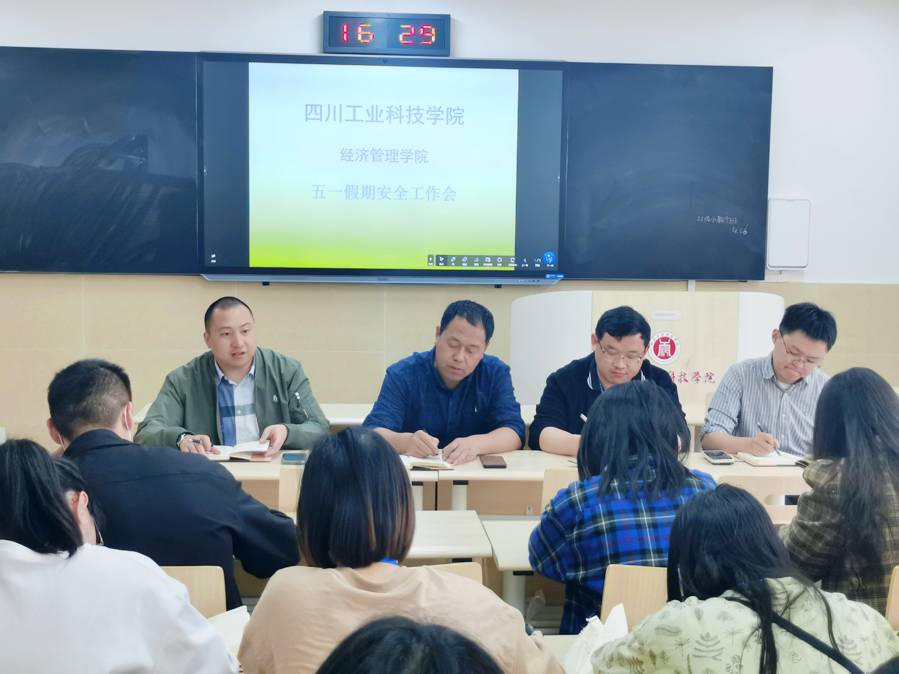 为保障五一假期学生安全工作顺利开展,经济管理学院于4月27日下午在龑江B406召开五一假期安全工作会。经济管理学院党东总支书记、院长王进,学院党总支副书记杨永岗,学工办主任张照明、张骏,以及全体辅导员参加本次会议。