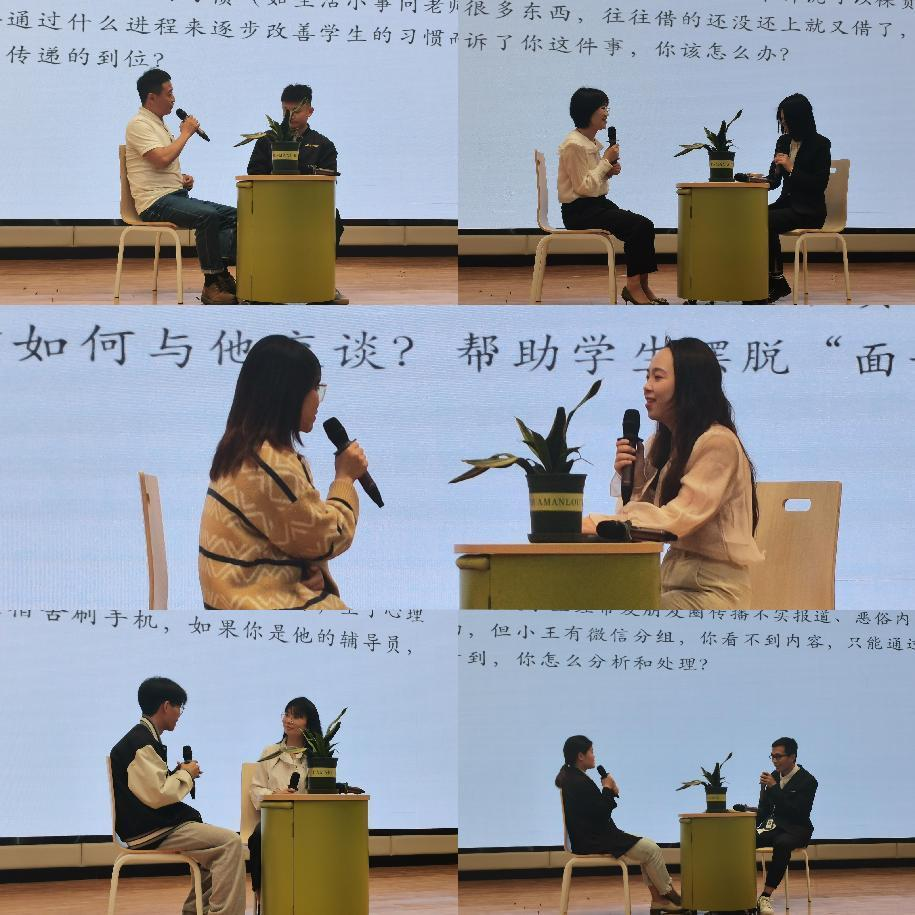 案例分析环节,紧扣高校辅导员工作实际,突出学生服务工作中心,以“你提问、我回答”的方式展开。参赛辅导员分AB角互提互答,综合运用心理学、教育学、管理学等多学科知识,对所选案例认真分析、理清思路、灵活应答、举措得当,充分彰显了新时代高校辅导员较强的应急处理能力和丰富的理论知识储备。