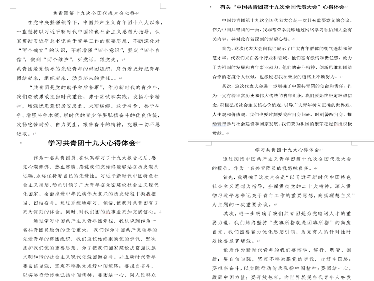本次共青团十九大学习会以团支部为单位开展组织化学习,覆盖教育学院全体学子。我院学子通过观看“习近平同团中央新一届领导班子成员集体谈话并发表重要讲话”视频,阅读蔡奇同志发表的《在强国建设民族复兴新征程上书写壮丽青春篇章》致词、《中国共产主义青年团第十九次全国代表大会报告》全文等共青团中央发布的“团十九大”专题推文,线上学习了习近平总书记的重要讲话精神、共青团十九大的会议精神。为充分落实学习成果,教育学院组织全体团员青年对本次学习会的心得进行分享。我院团员青年表示,本次共青团十九大学习会的开展令人心潮澎湃、备受鼓舞,我们要深刻理解习近平总书记的重要讲话精神,牢记总书记的嘱托,坚定不移听党话、跟党走,立志做“有理想、敢担当、能吃苦、肯奋斗”的新时代青年,成长为堪当民族复兴重任的时代新人。