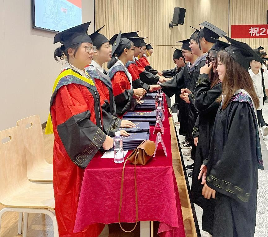 校长助理、学院院长陈堂为2023届毕业生送上临别寄语和真挚祝福。他首先向获得省级优秀毕业生以及顺利毕业的同学表示热烈的祝贺,并寄语全体毕业生:一是行者方致远,奋斗路正长,致力成为有责任、有担当、肯奋斗的新时代有为青年;二是面对未来,要有泰山压顶腰不弯的坚韧和敢于直面的勇气;三是未来的道路上互相帮助,勿忘师生谊,珍惜同窗情。