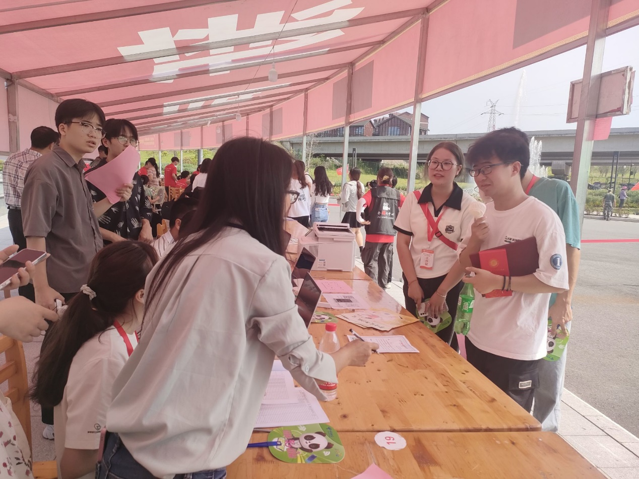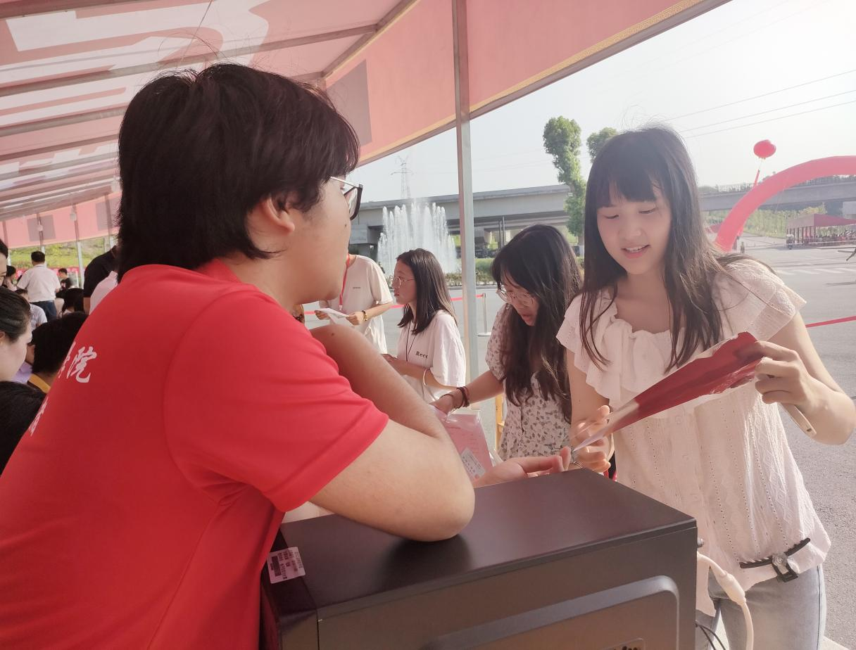新生陆续到达龑江学村报名处,志愿者有条不紊地迎接新同学,为新生带路,帮助顺利完成报到工作,积极解决新生遇到的各种问题,温暖开启新生报到第一站。