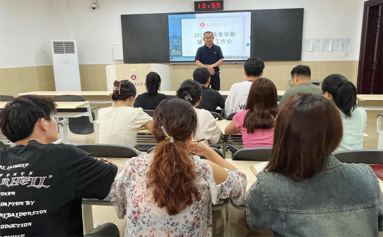 陈堂对本学期学生工作作总体要求。希望全体辅导员在工作中要找准定位,履行岗位职责,服从学校以及学院的管理和工作安排,将学生工作做细、做精、做全。其次,张东国就近期工作作详细安排:一是持续抓好学生安全工作,关注学生在校期间的思想动态,持续做好学生安全教育,加强学生出勤管理,关注学生因病缺勤情况;二是梳理学生新学期报到注册情况,关注家庭经济困难学生群体,并针对此类情况做好学生资助管理办法的宣讲,对待学生要有关心、有温度;三是根据相关部门要求,做好秋季传染病预防宣传教育工作,认真落实各项传染病防控要求,做到及时发现、及时上报、及时治疗,规范处置各类传染病突发情况;四是做好学风建设提升,巩固学风建设前期成果,持续做好学风教育和引导,以职业生涯规划的形式引导学生做勇攀知识高峰的探索者,激励学生奋发学习提升学历,倡导人人做良好学风的建设者和守护者。