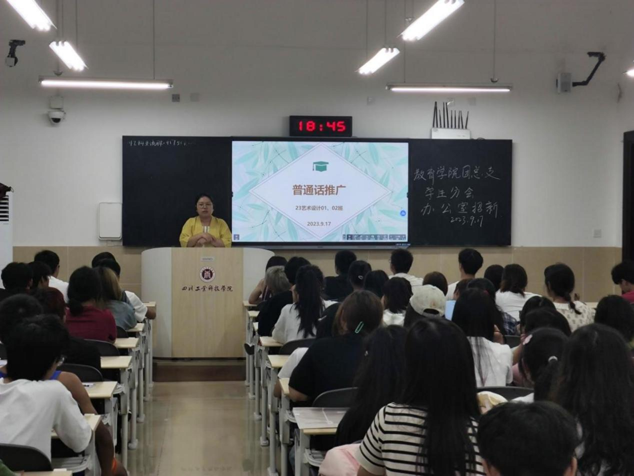 在本届普通话推广周来临之际,为增强同学们规范使用普通话、书写规范汉字,提升语言交流能力,保持良好的学习普通话氛围。建筑工程学院于9月18日组织开展“推广普通话,奋进新征程”主题教育活动。