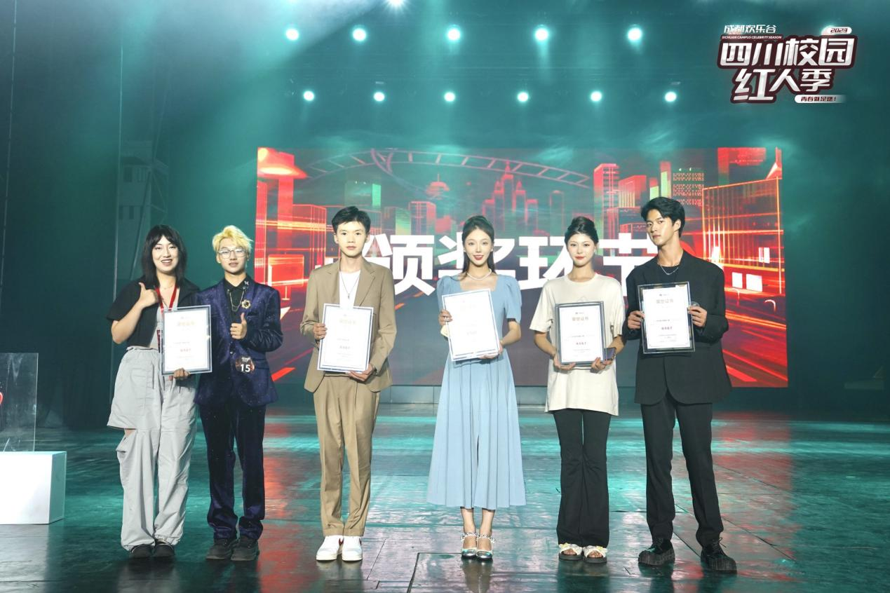 近日,由微博校园四川渠道联合成都欢乐谷举办的2023四川校园红人季在成都欢乐谷剧院落下帷幕。决赛中,由学校谭玲老师,夏陶老师,张彬老师指导吴俊杰同学演绎的歌曲作品《那是你离开了北京的生活》获得了“音乐赛道十佳选手”,杨晨同学的红毯造型秀获得了“优秀选手奖”。