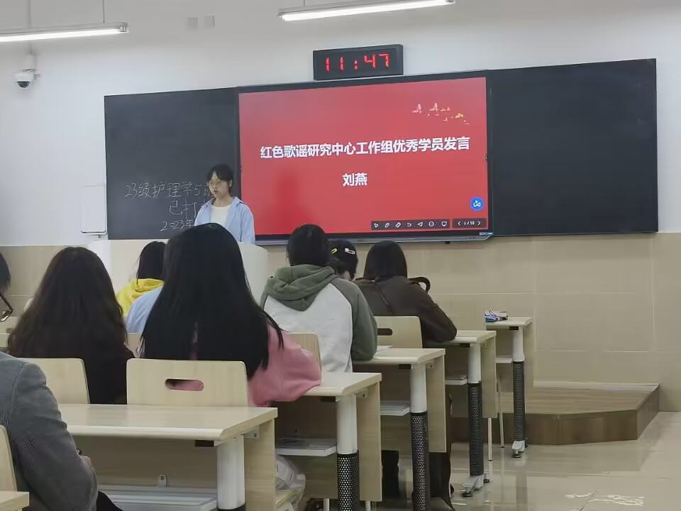 按照会议流程,红色歌谣研究中心负责人对红色歌谣研究中心工作的开展情况进行阶段总结。分享环节突出了地域特色和专业特色。陈春蕾老师以《德阳红色资源融入思想道德与法治课的有效性》为题从德阳红色资源概况、德阳红色资源融入思想道德与法治课的困境和对策进行分享。何林贵老师以《红色基因融入学生管理》为题从“重”在思想引领,“根”在养成教育,“贵”在感恩励志三个方面进行分享。黄祖霞老师以《陕南红色文化的开发与利用》为题从陕南红色文化资源、陕南红色文化旅游、陕南红色文化融入思政教育、陕南红色文化文艺作品四个方面进行分享。冯军成老师以《红色资源融入马克思主义基本原理课程的教学模式探析》为题从红色资源融入马克思主义基本原理课程的背景、内容和路径三个方面进行分享。
