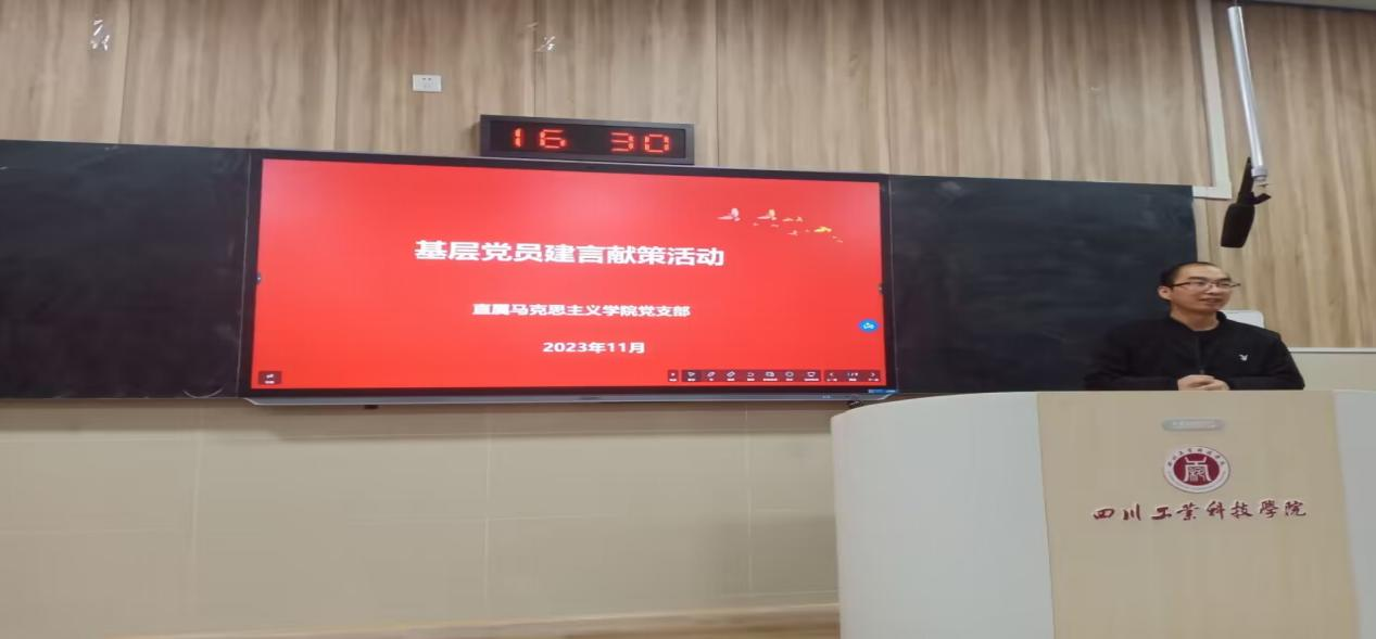 11月16日,马克思主义学院党支部按照学校组织部工作安排,举行基层党员建言献策活动,活动由党支部组织委员冯军成主持,学院全体党员同志参加。