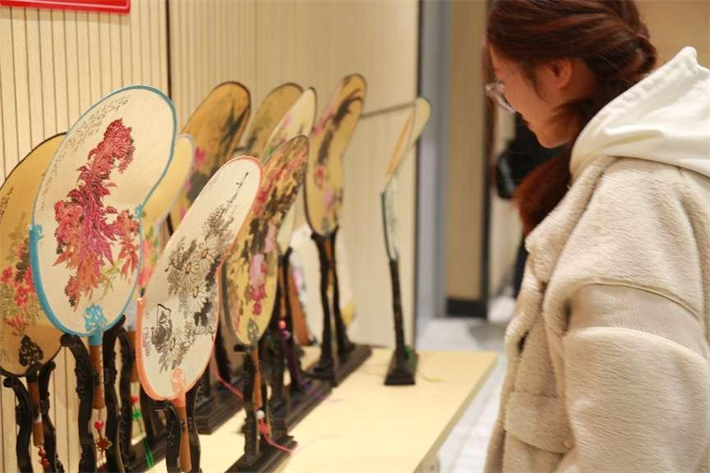 龚书为在场师生讲述了潮州团扇的基本形态、潮州团扇传入四川后在德阳的本土发展与演变、德阳潮扇的发展时序、德阳潮扇的基本形制与工艺等内容。同时,龚书老师带来二十余件作品提供给师生观赏把玩,使同学们更加清晰的感受到德阳潮扇的独特工艺。