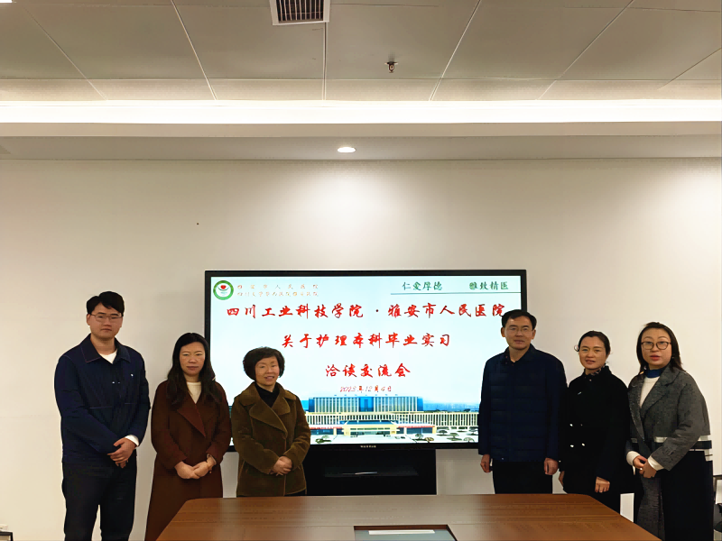 12月6日,体育与健康学院副院长刘琼碧、党总支副书记李双晶带队一行4人,前往雅安市人民医院洽谈学生毕业实习与就业相关事宜,雅安市人民医院副院长孟宪东、护理部主任胡盛琳、副主任周昀霞、李智慧参加了此次洽谈会议。