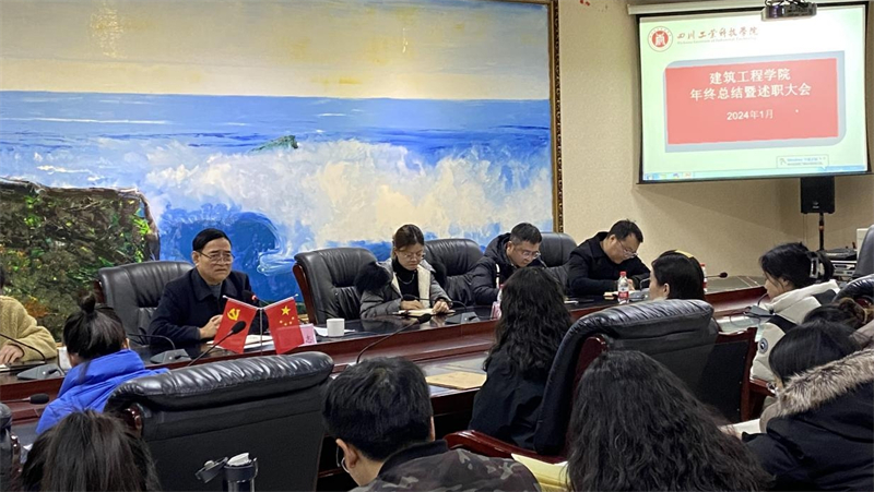 1月2日下午,建筑工程学院在罗江校区图书馆D01会议室组织召开2023年度年终总结暨述职大会,学校副校长张仁志出席会议,学生处处长蒋亮、教务处及人事处教师代表、学院全体教职工参加会议。