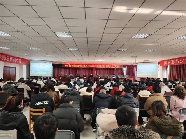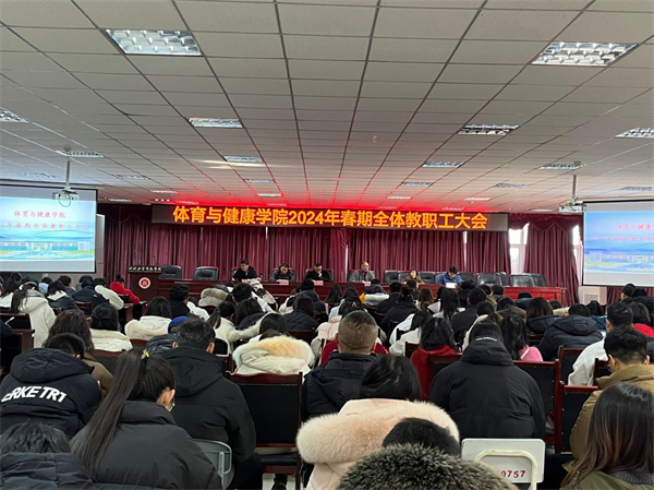 学院此次全体教职工大会是凝心聚力、共谋发展的会议。体育与健康学院全体教职工将努力奋进,不断提高教师个人专业水平和业务能力,紧跟学校发展的步伐,以育人理念统筹教育教学工作,坚持立德树人,把理想信念、价值引领融入教育教学和日常实践中去。为学院发展积极建言献策,贡献力量,齐心协力推动学校事业再上新台阶!