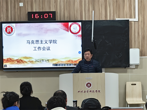 3月7日下午,马克思主义学院全体专兼职教师在龑江学村B-212教室召开工作例会。